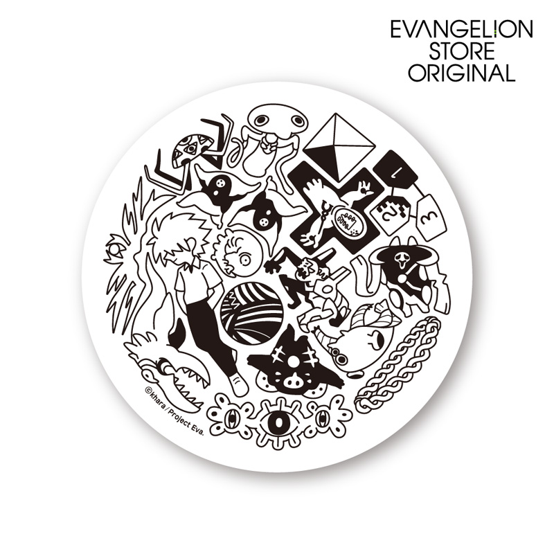 新世紀エヴァンゲリオンの使徒・17体を円の中に集めた新規絵柄!絶妙にデフォルメされた使徒たちがユーモラスなイラストです。
