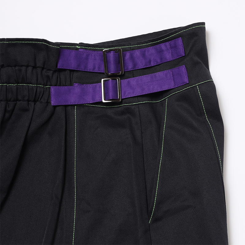 ウエスト片側に配置した2本のベルトがアクセントとなり、スタイルアップ効果が狙えます。バックルで細やかなサイズ調整が可能。