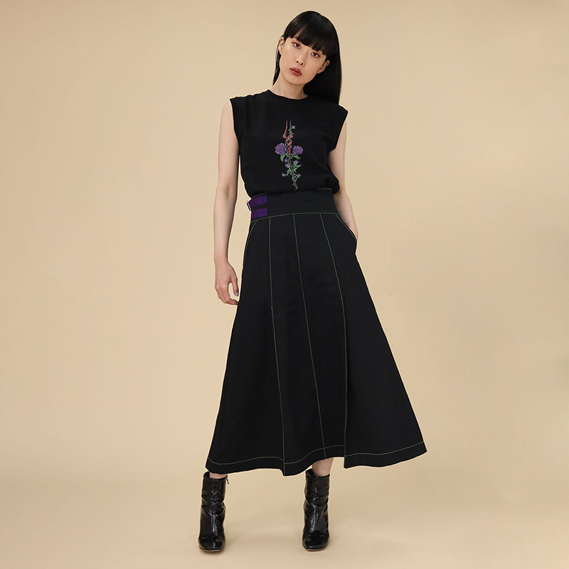 - 細部まで宿るRADIO EVAらしい配色のロングフレアスカートが登場。