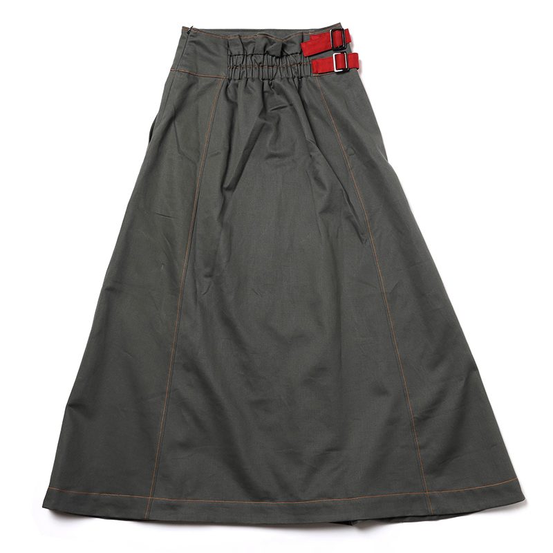 オリジナルボディでこだわり抜いたロングフレアスカートはシルエットを綺麗に保てるハリのあるツイル生地を採用し、ウエストはゴムとファスナーを使用し着脱がしやすい嬉しい仕様に。サイドにはポケットを配置しています。RADIO EVAのトップスとも相性抜群のスカートです。