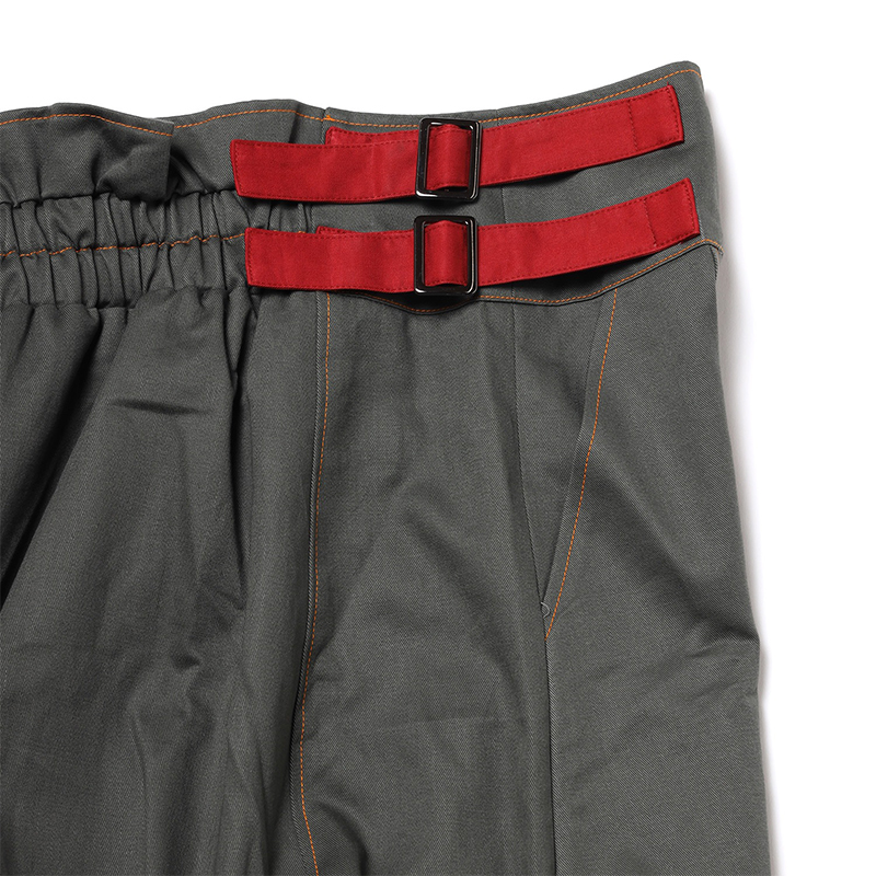 ウエスト片側に配置した2本のベルトがアクセントとなり、スタイルアップ効果が狙えます。バックルで細やかなサイズ調整が可能。