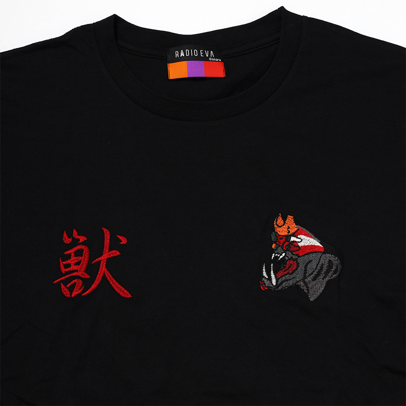 フロントにはTHE BEASTの名の通り"獣"の一文字、そしてエヴァンゲリオン 2号機 獣化第4形態(第2種)の顔部分を丁寧に刺繍で再現。