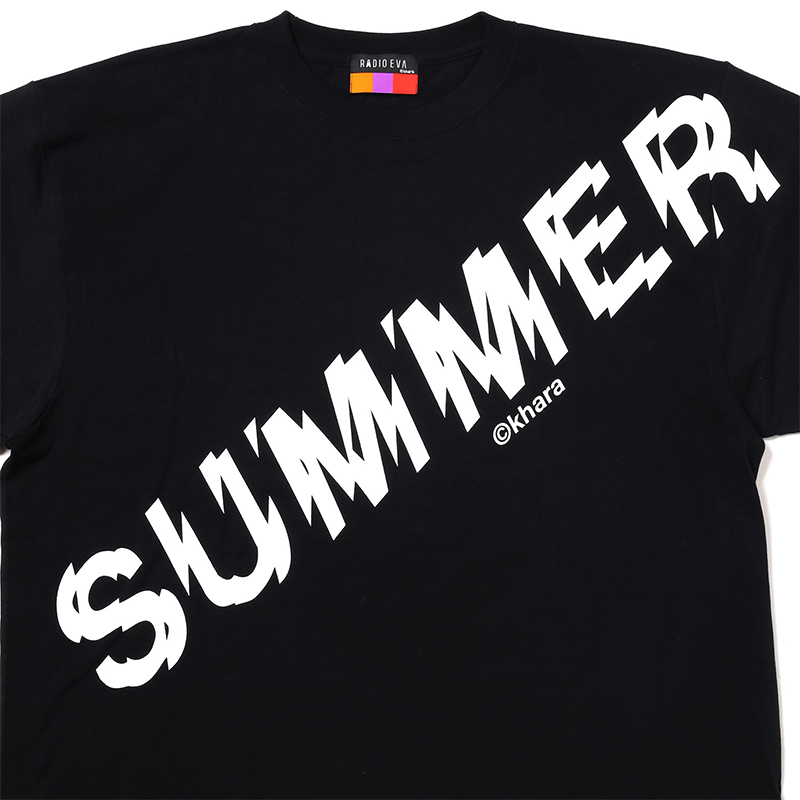 躍動感を感じさせる振動が走ったようなSUMMERのロゴ。左肩にかけて大きくプリントすることで、シンプルながらも力強い仕上がりとなっています。