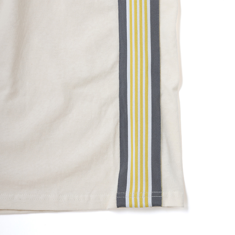 オリジナルボディーのTシャツには大胆に袖のラインに沿うようにテープを配しました。