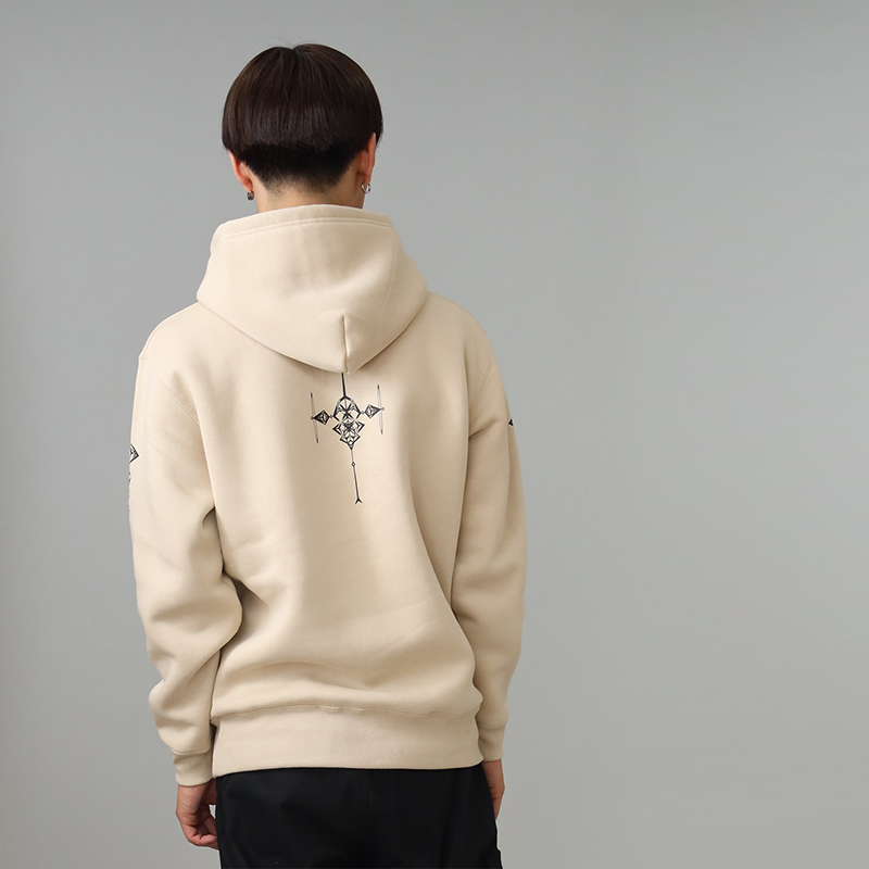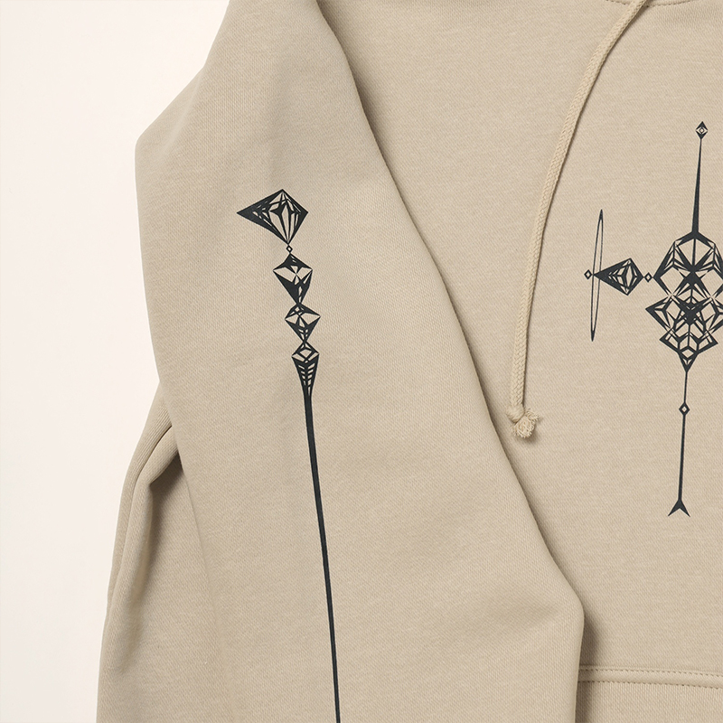 左右対称の美しいデザインを分解しボディーと袖にレイアウトすることで、第7の使徒をそのまま身に纏うような仕上がりとなっています。