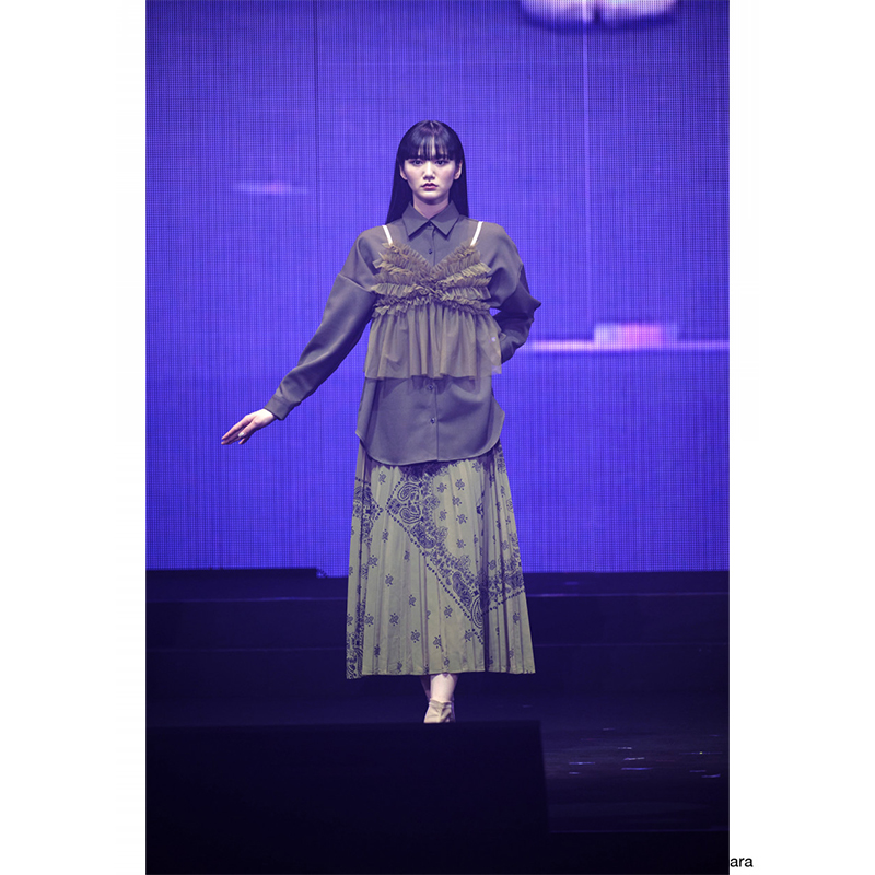 ウエスト部分は綺麗にギャザーを寄せ、トップスをインしても”きちんと感”が出る好印象な仕立て。