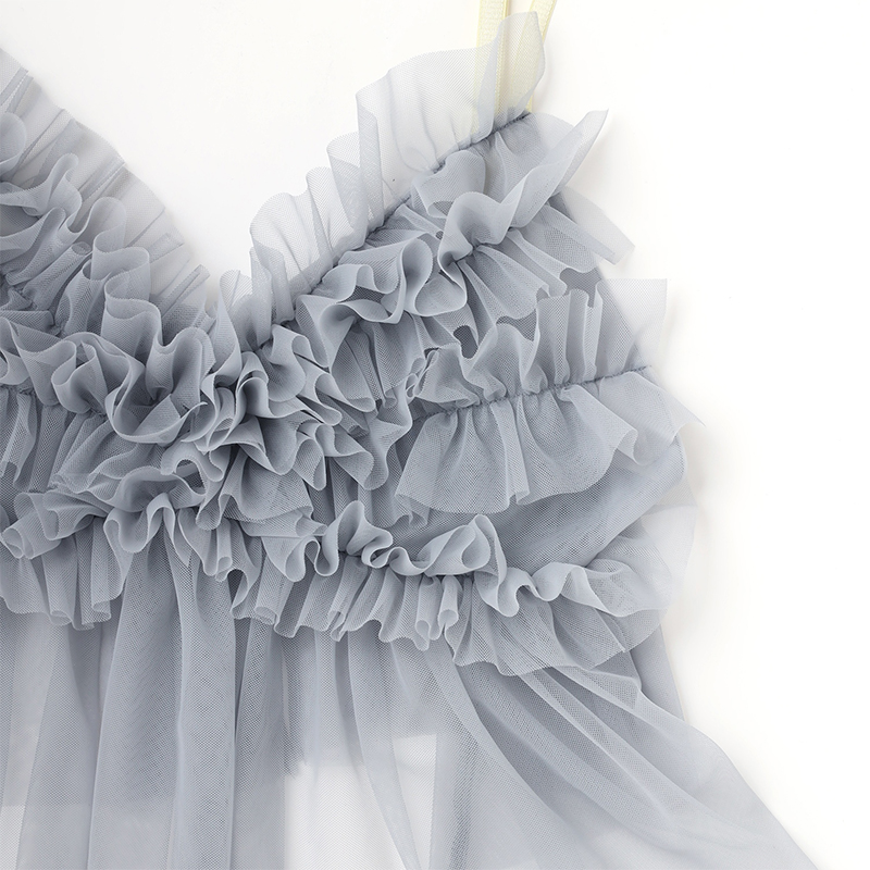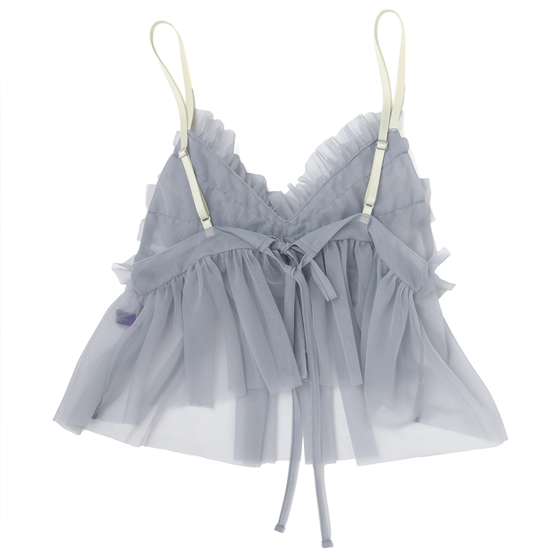 チュール素材に合わせた肩紐のワンポイントカラーがオシャレな仕上がりに。