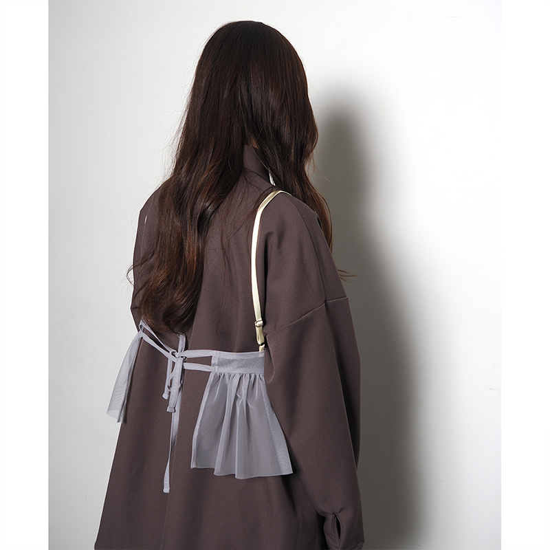 背中に垂れる2本の紐で身幅を自由に調整できるので、どんなインナーにも合わせることが可能です。