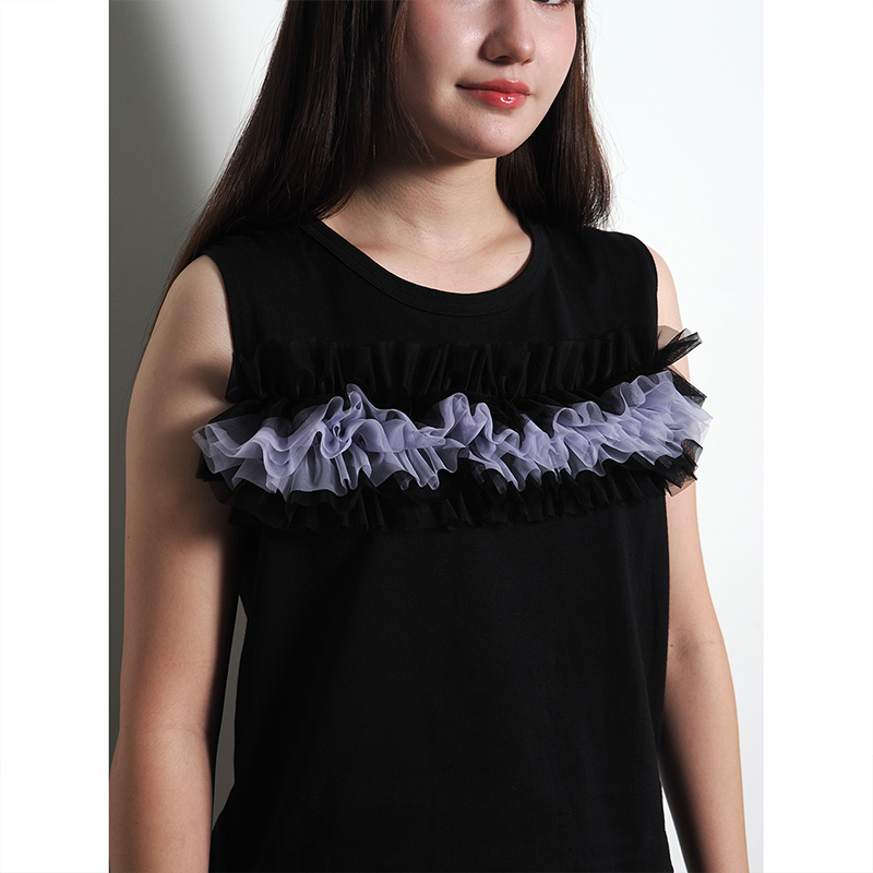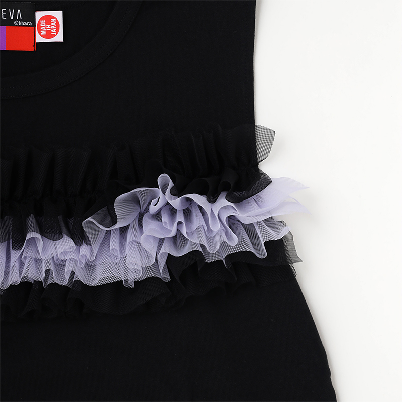 - エヴァンゲリオンの機体カラーであしらったチュール素材をドッキングしたノースリーブカットソー