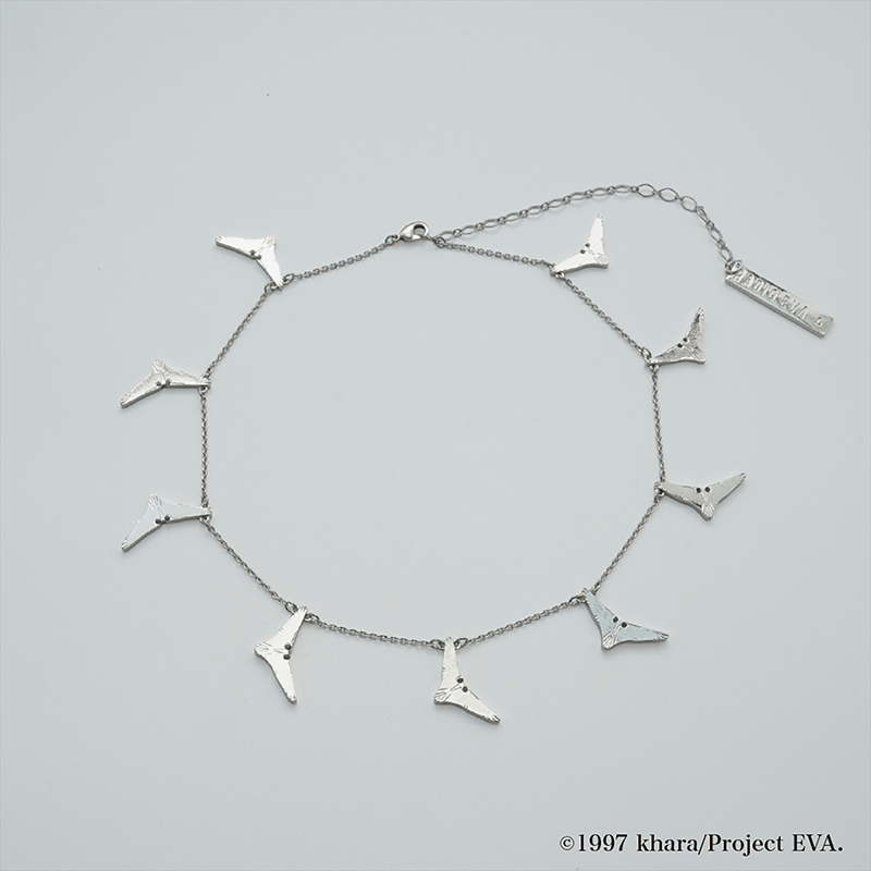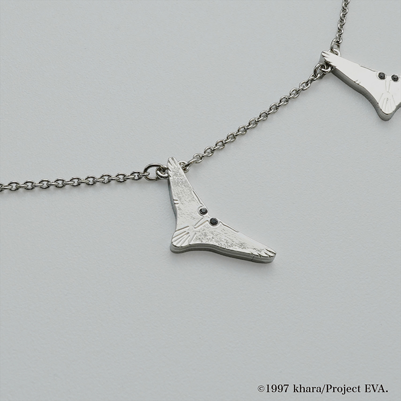 EVA量産機が空を舞うシーンをネックレスにしました。 衝撃的なその姿を、繊細かつエッジの効いたデザインで表現しました。