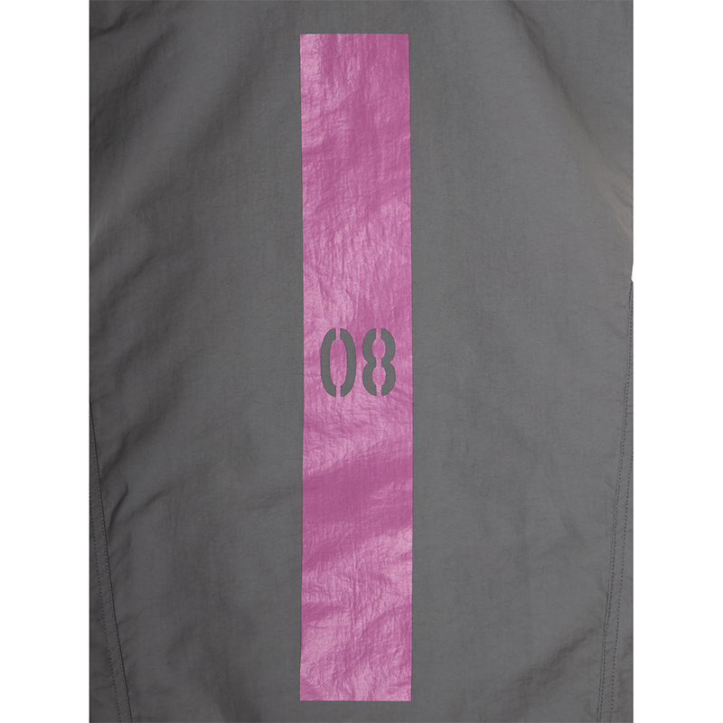 左胸にはさりげなく機体ナンバーをプリント。カラーアレンジのみによってエヴァンゲリオンの世界観を表現し、主張を抑えることでファッションアイテムとしての完成度を高めています。