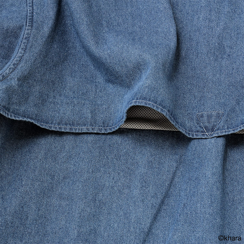 トップスは背中の切り替えを縫い付けずに裏地にメッシュ生地を付けることで熱を逃がします。
