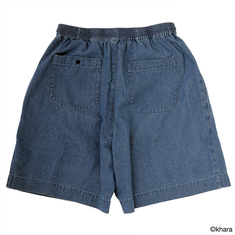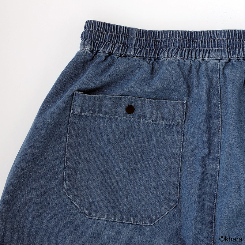 コットンのライトオンスデニムを使用したシャツタイプの前開き仕様のトップスとワイドすぎない程よいサイズ感が魅力のボトムスがセットになった今作。