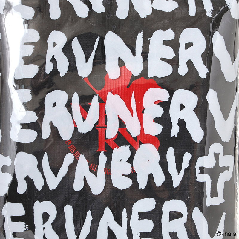 代表作でもある永遠と連なる文字アートから、「NERV」をモチーフにデザイン。