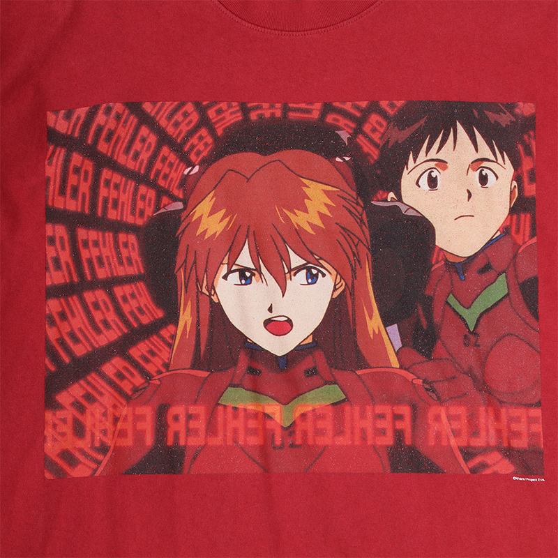 今や貴重なシーンとも言える、アスカが搭乗する弐号機にシンジも同乗し使徒と戦うシーンカットをメイングラフィックとした今作。背面にはエントリープラグ内に映し出された”FEHLER”の文字をオマージュしたオリジナルグラフィックをプリント。
