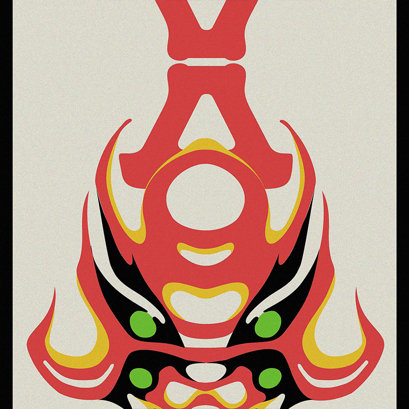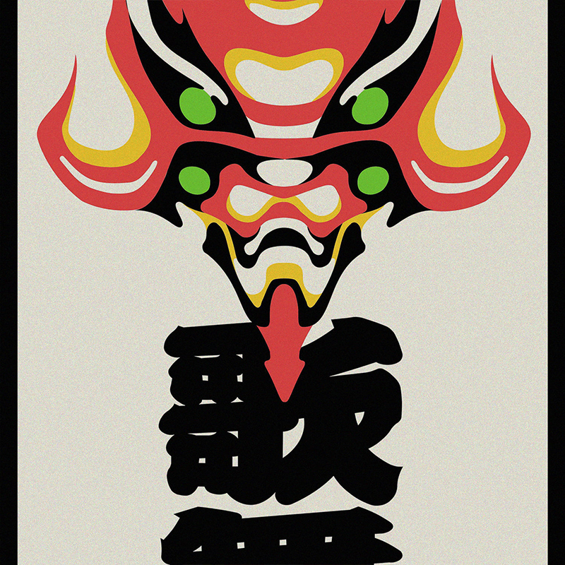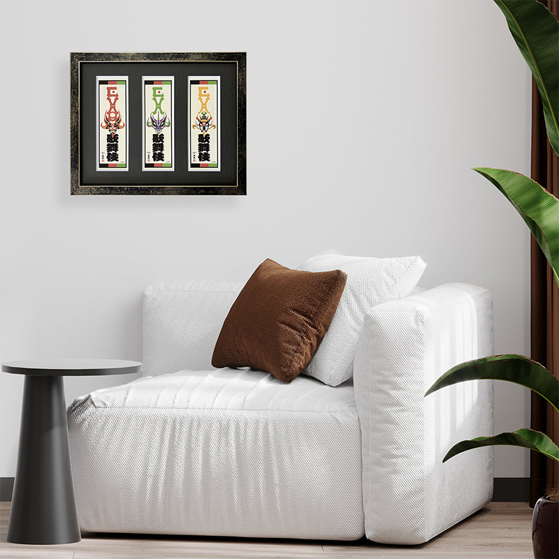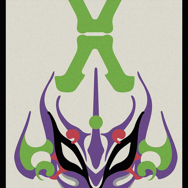 『エヴァンゲリオン』30周年大型イベント「EVANGELION:30+;30th ANNIVERSARY OF EVANGELION」における「歌舞伎交響曲第急番 エヴァンゲリオン」上演イメージをもとに絵師・出雲が機体の象徴的カラーを歌舞伎の隈取意匠を江戸以来の様式美を持つ千社札に昇華した30周年記念作品。