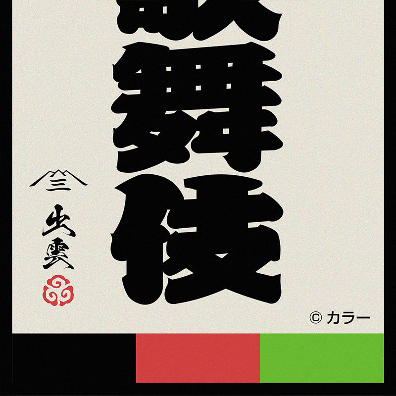 その実施記念として「歌舞伎交響曲第急番 エヴァンゲリオン」上演イメージをもとに、絵師・出雲がデザインした意匠を千社札として仕立てた作品です。