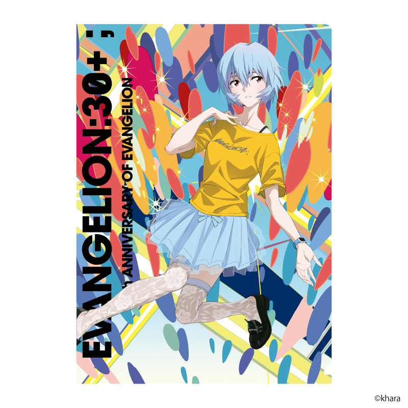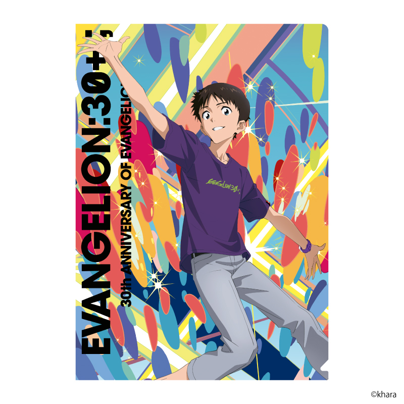 「EVANGELION:30+; 30thANNIVERSARY OF EVANGELION」の描き下ろしメインビジュアルを使用したクリアファイルセットとクリアファイルを収納できるクリアファイルホルダーのセットです。