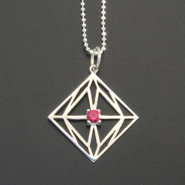 第6の使徒をモチーフに繊細なデザインに、赤いシンセチックルビーを留めたペンダントトップシリーズです。