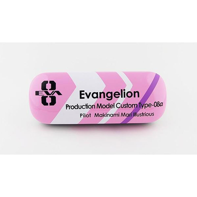 メガネケース上面はピンクをベースにエヴァンゲリオン8号機αをイメージしたデザインをプリントしています。