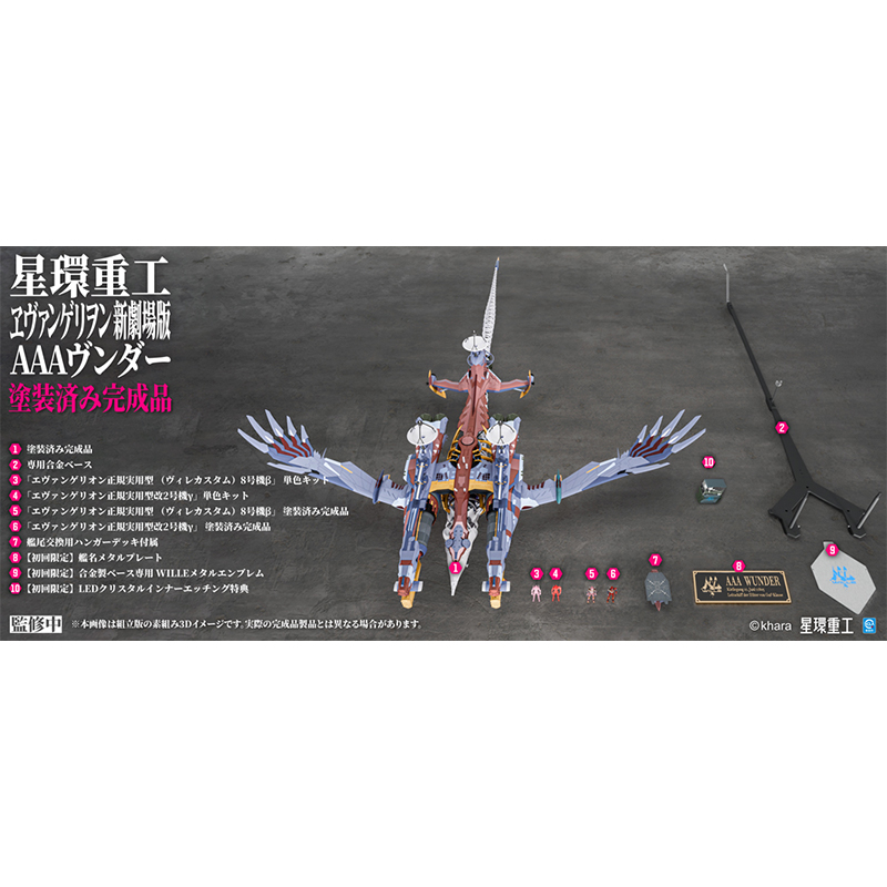 塗装完成品版では、金属製の艦船ネームプレートに加え、塗装済みのエヴァンゲリオン 正規実用型(ヴィレ仕様)8号機βおよび正規実用型改2号機γを同梱。