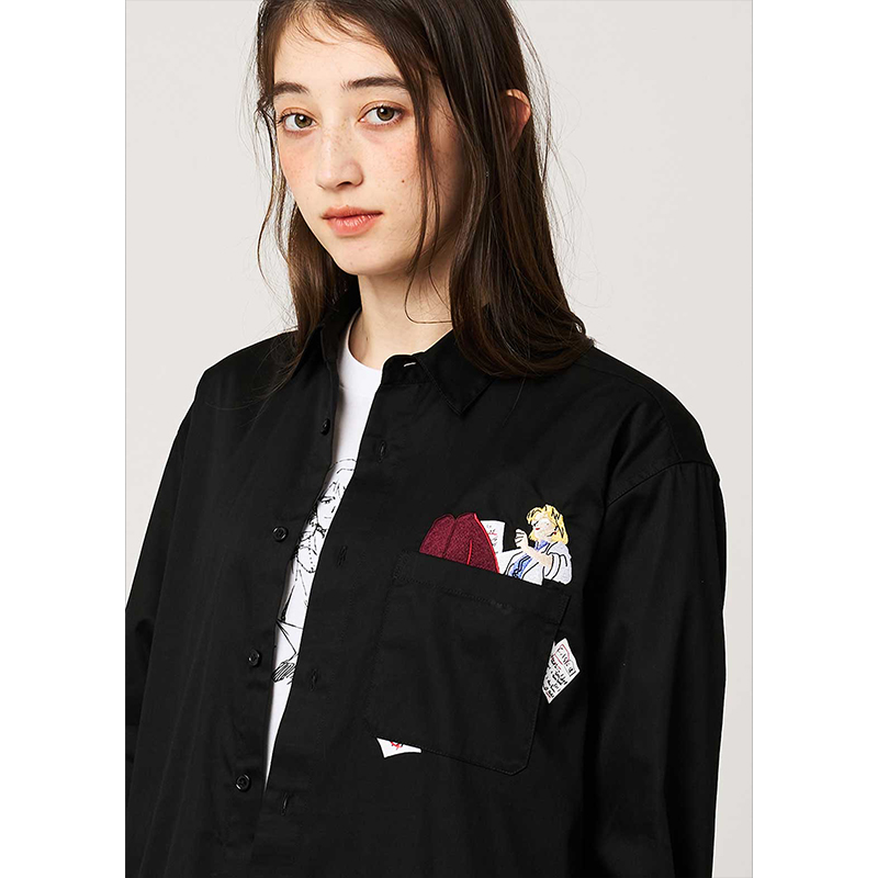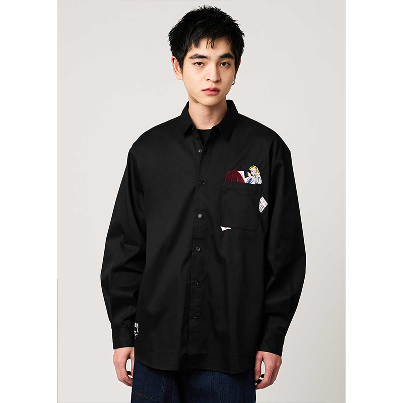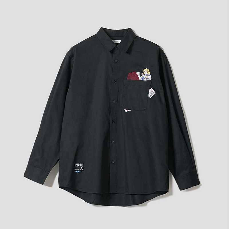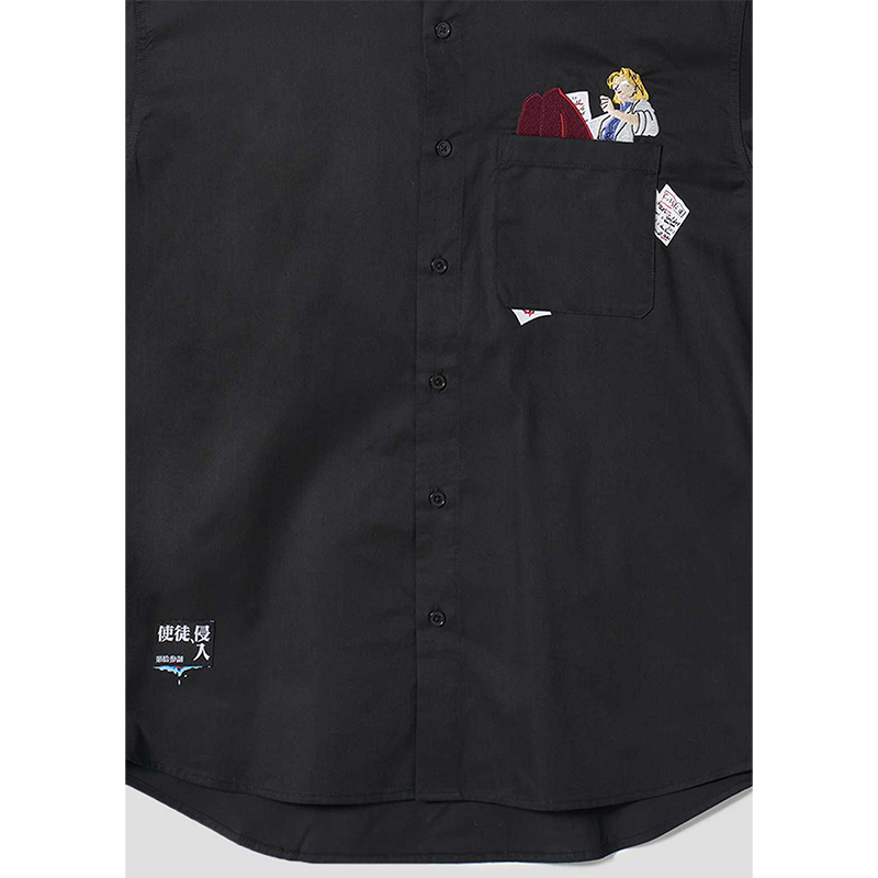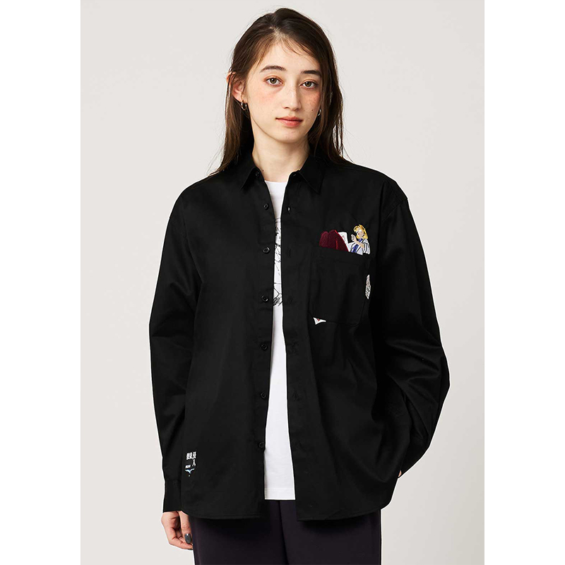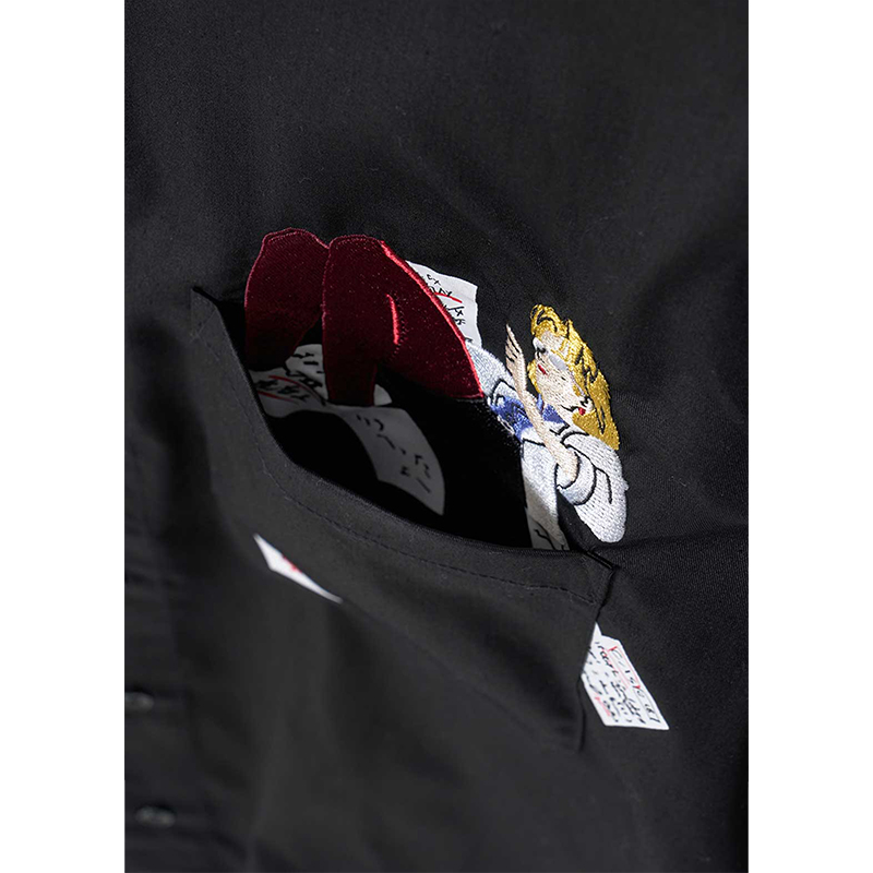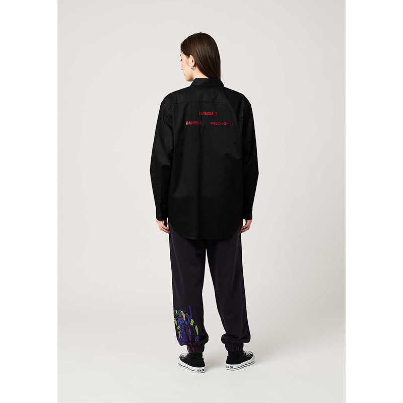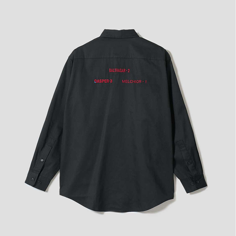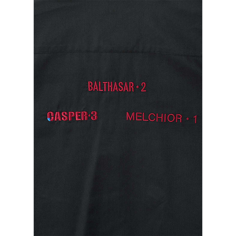 第拾参話「使徒、侵入」より。NERVのシステムMAGIに侵入したウイルスのような第11使徒イロウルのハッキングを止めるべく、リツコが奮闘する様子を胸元のポケットに刺繍しました。タイトルの織りネーム下から使徒の増殖が始まっています。バックにはMAGIシステム内の3つの名前が刺繍されています。果たして奮闘の結果は・・?CASPER・3の左下にご注目ください。
