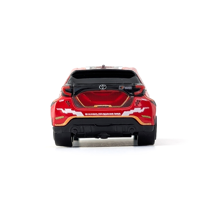 本商品は2023年に開催された”Moriya GT Grand Prix (開催地:茨城県守谷市)”に登場した「エヴァRT2号機 トヨタ GR ヤリス」をモチーフとし、UV印刷によって再現された細かなグラフィックなど、ディテールにこだわった仕上がりとなっています。