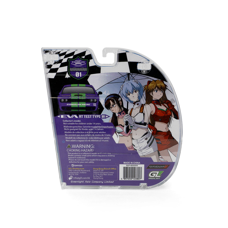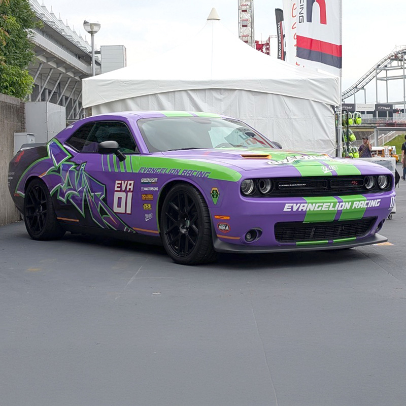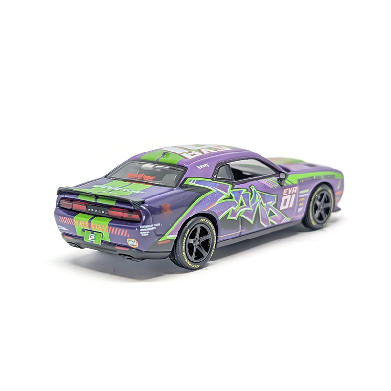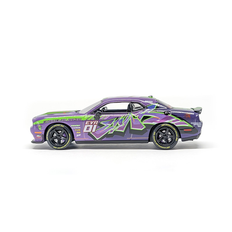 本商品は、エヴァレーシングが2024年に参戦したS耐第3戦(鈴鹿サーキット)の会場で特別展示された、エヴァンゲリオン初号機をイメージしたカラーリングの「EVA RT TEST TYPE-01 DODGE CHALLENGER」をモデルにしております。