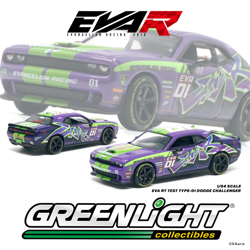 - アメリカのミニカーブランドであるGREENLIGHTより、 1/64スケールの EVA RT TEST TYPE-01 DODGE CHALLENGERが登場。