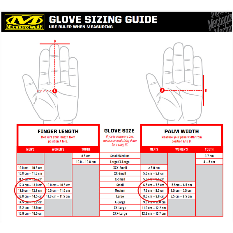 サイズ 指の長さ 手のひらサイズ Small(SM) 12.3cm - 13.0cm 6.5cm - 7.5cm Medium(MD) 13.0cm - 13.8cm 7.5cm - 8.5cm Large(LG) 13.8cm - 14.5cm 8.5cm - 9.8cm