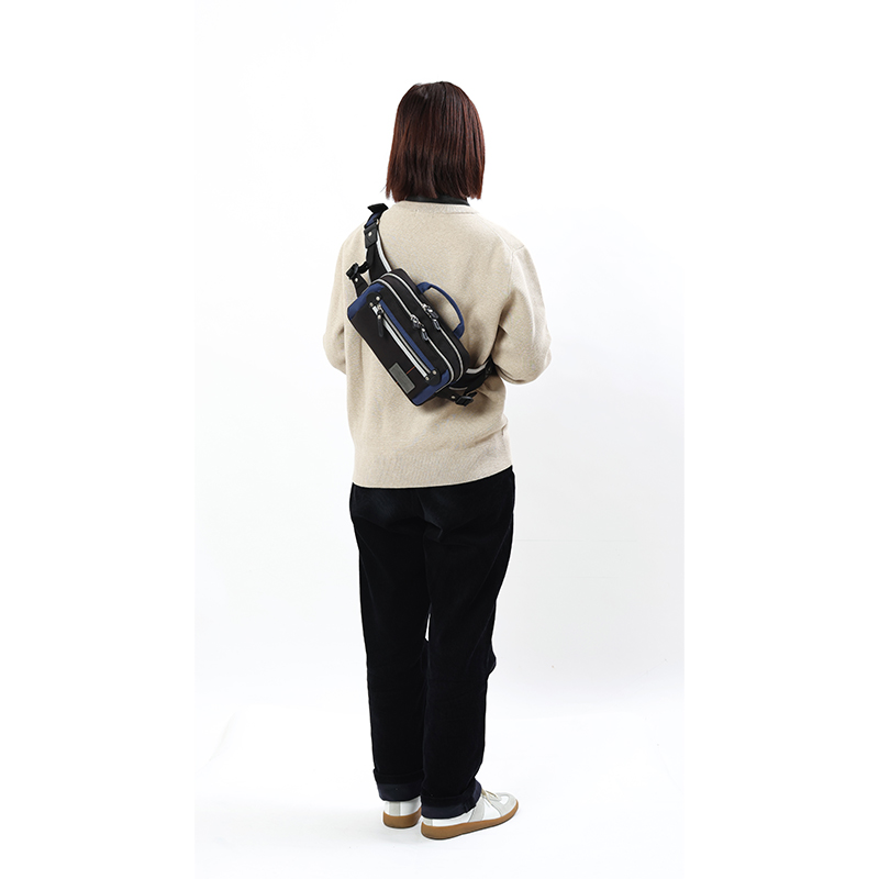バッグの本体素材には程よくハリのあるポリエステル生地を採用。財布には杢調ポリエステル生地を採用しカジュアルながら落ち着いた印象に仕上げております。