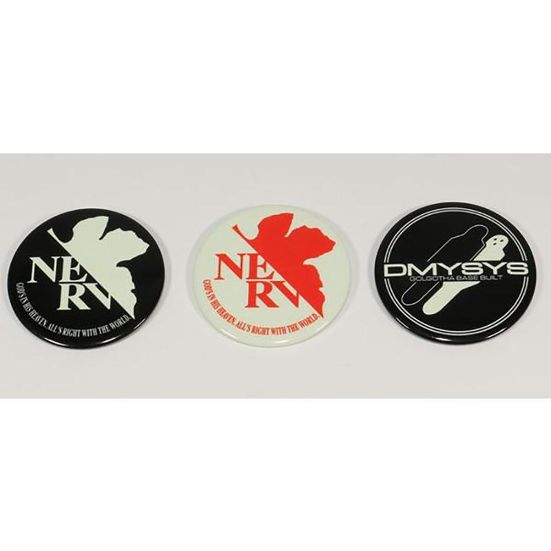 同時発売の高発光ネルフ缶バッジと同じネルフマーク2種類に、ダミーシステムマーク1種類の3種がセットになったステッカーセットです。
