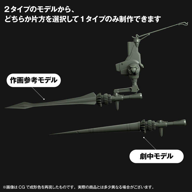 頭部形状とロンギヌスの槍(似非復元型)は、実際に劇中に登場する「劇中モデル」と「作画参考モデル」のどちらかを選択し制作できます。