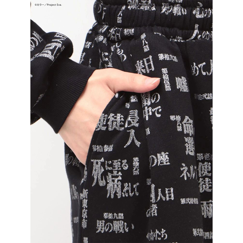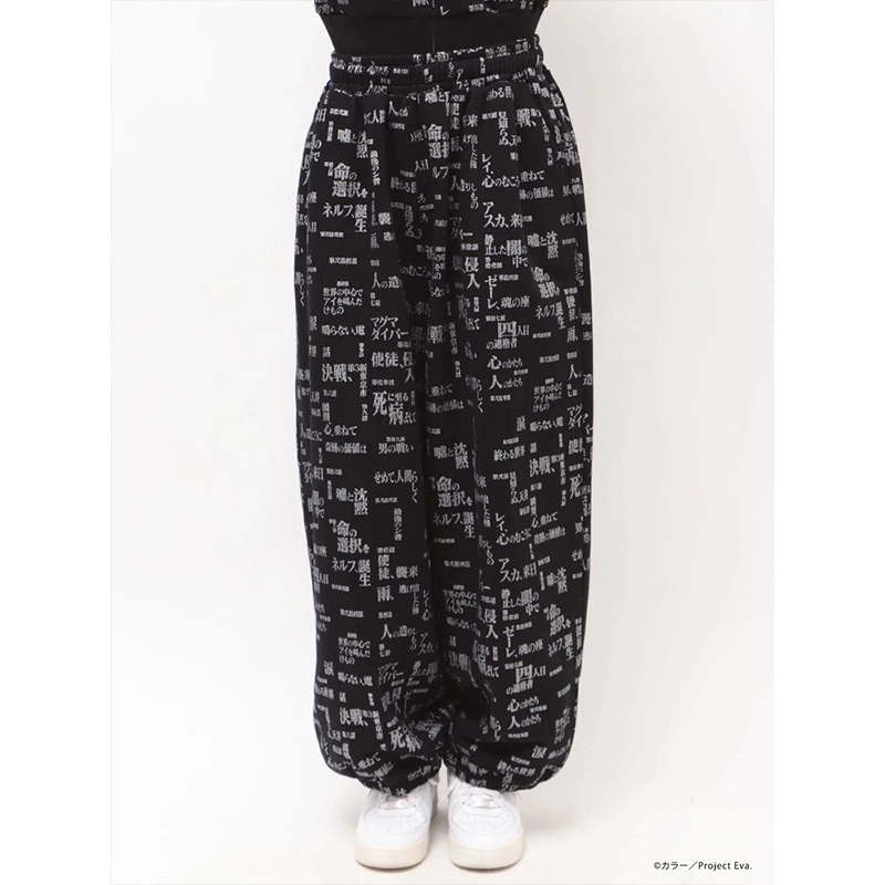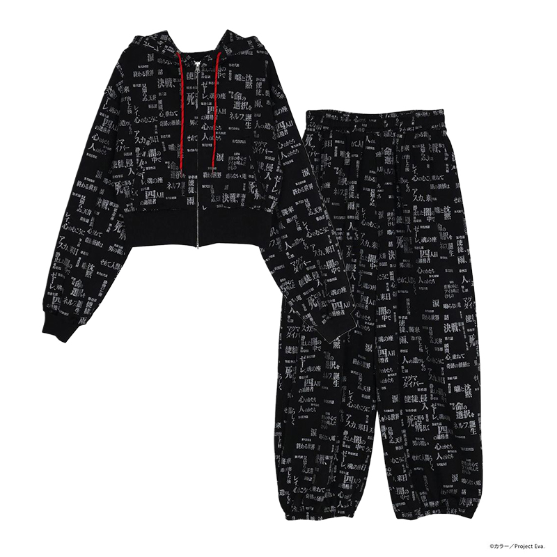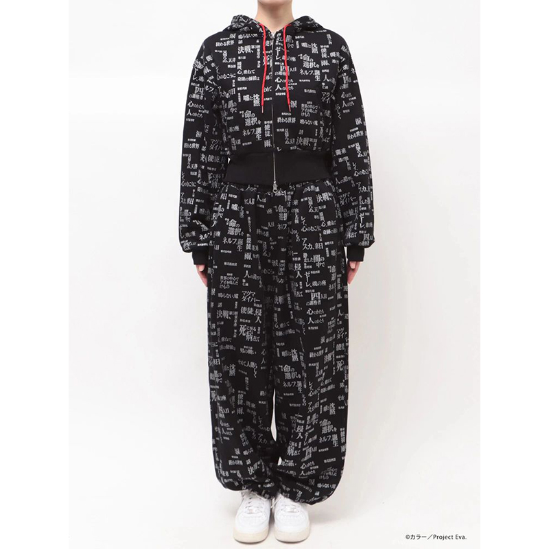 - 『新世紀エヴァンゲリオン』のサブタイトルロゴを全面にあしらった、存在感のあるスウェットセットアップ。