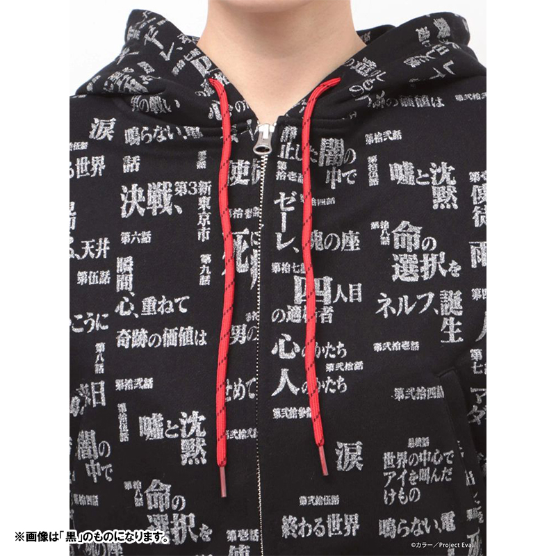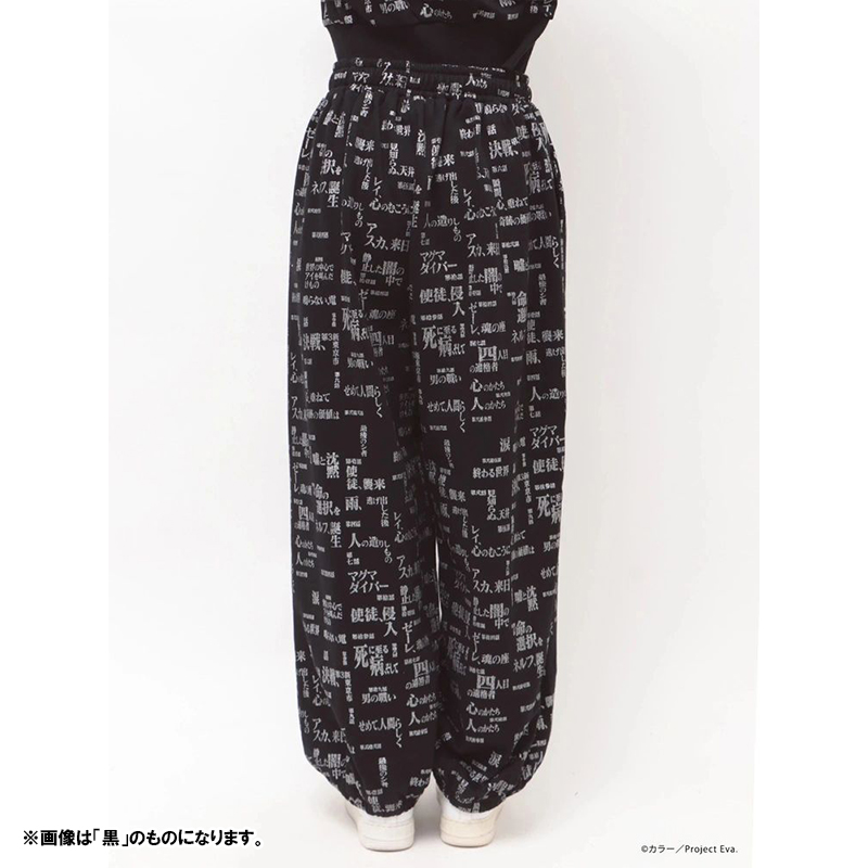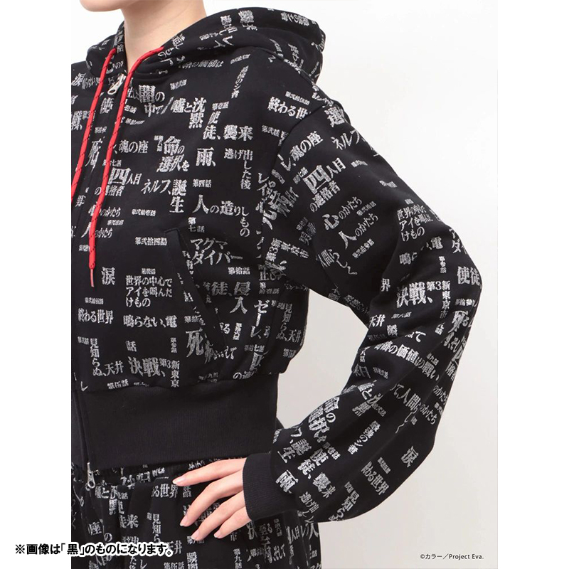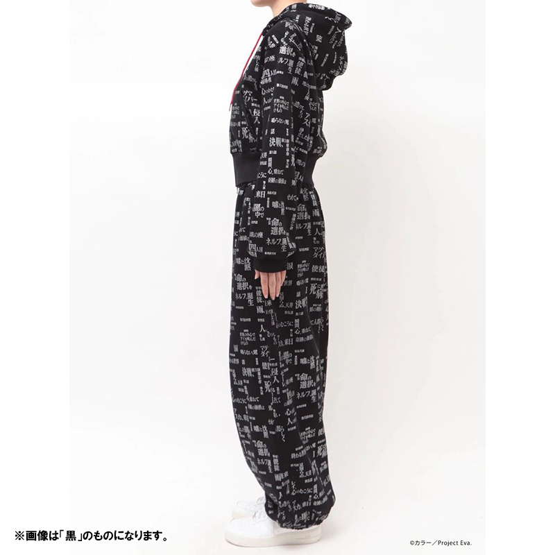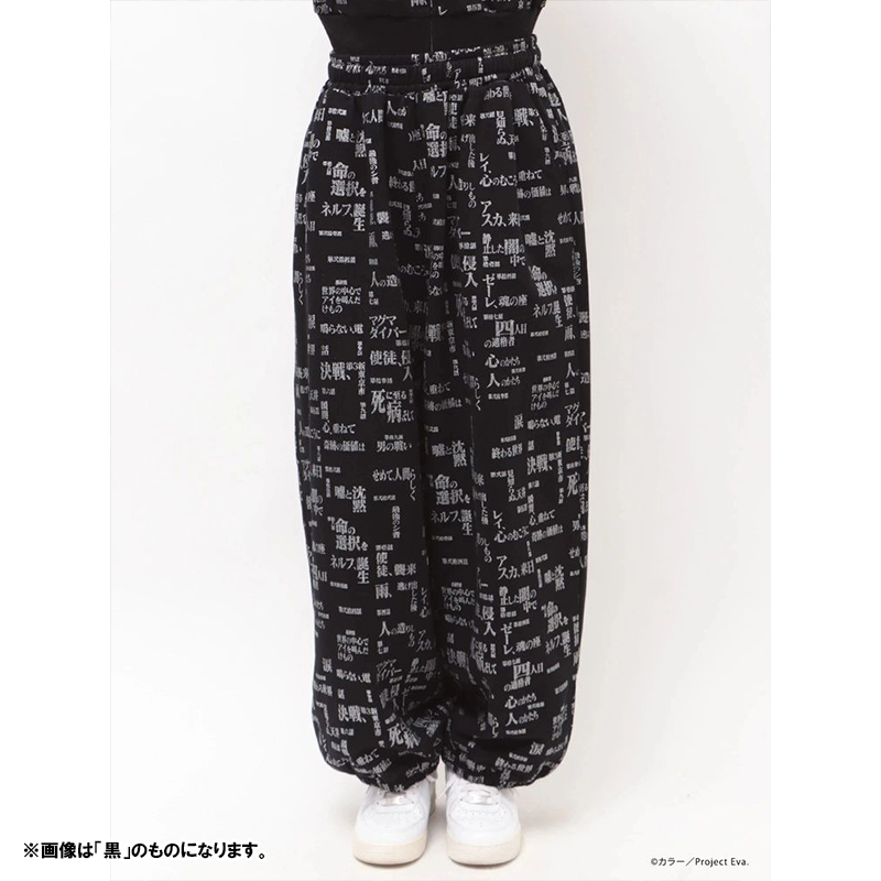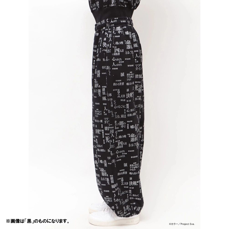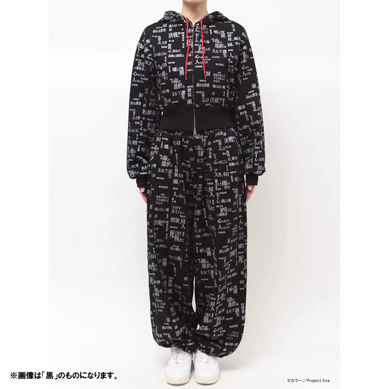 - 『新世紀エヴァンゲリオン』のサブタイトルロゴを全面にあしらった、存在感のあるスウェットセットアップ。