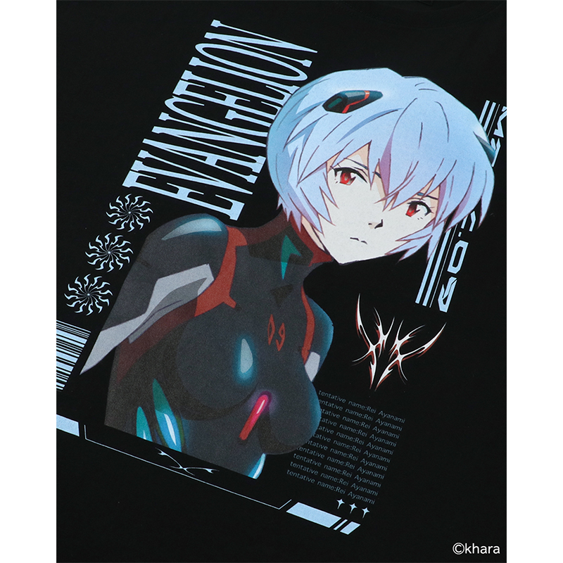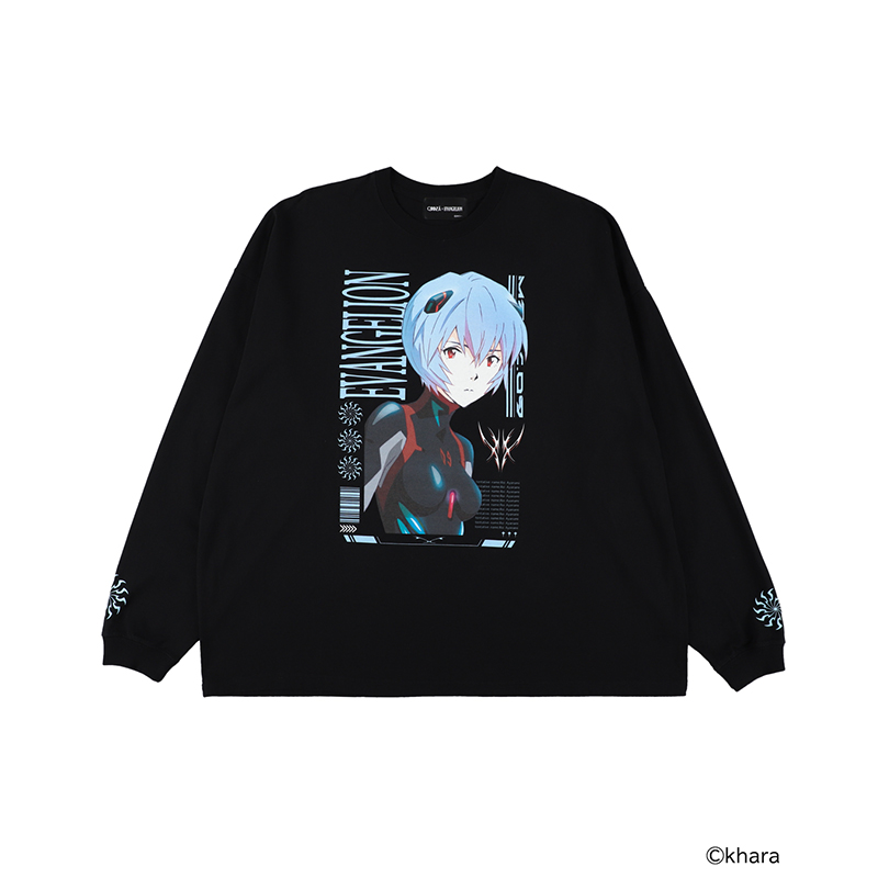 - 黒いプラグスーツ姿のアヤナミレイ(仮称)を大きく配したロングスリーブTシャツ。