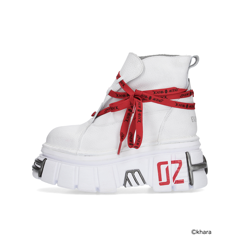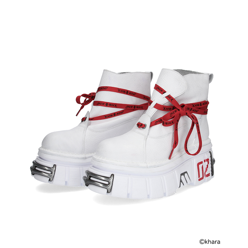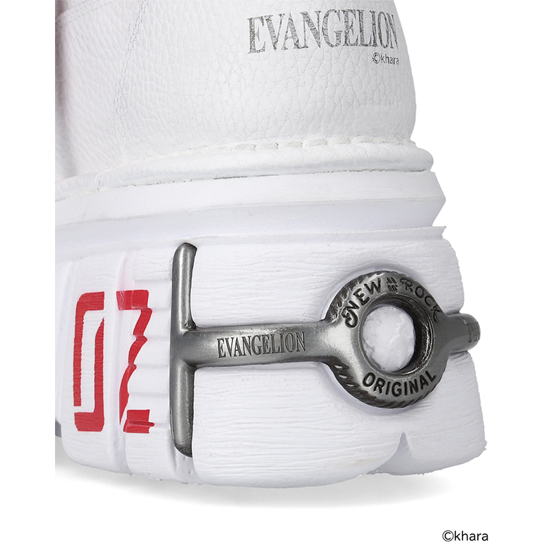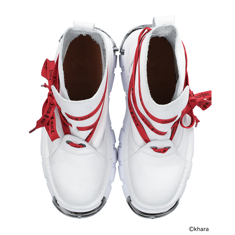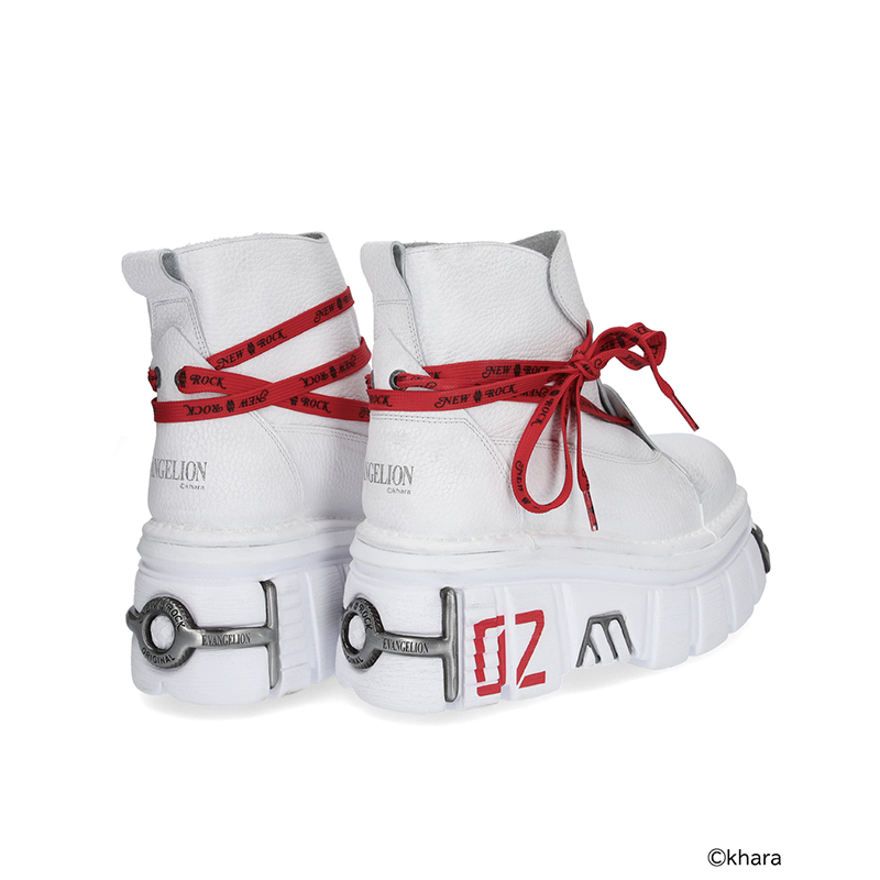 - 式波・アスカ・ラングレーの白いプラグスーツをモチーフにしたハイカットブーツ。